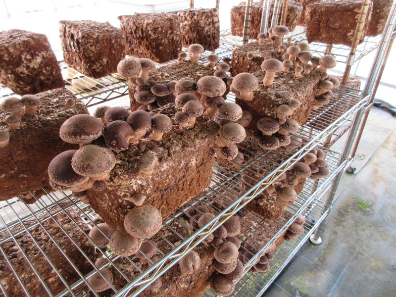 いからし工房では椎茸の生育途中、たくさん生えてくる椎茸を「間引き」をすることで、一つあたりの椎茸に届く栄養分を増やし、より大きな個体を収穫できるよう一つひとつ手作業で調整しています。農薬や化学肥料は不使用で、与えるのは水のみで栽培管理はシンプルでありながら、大きく肉厚で味の濃い椎茸に育てています。
