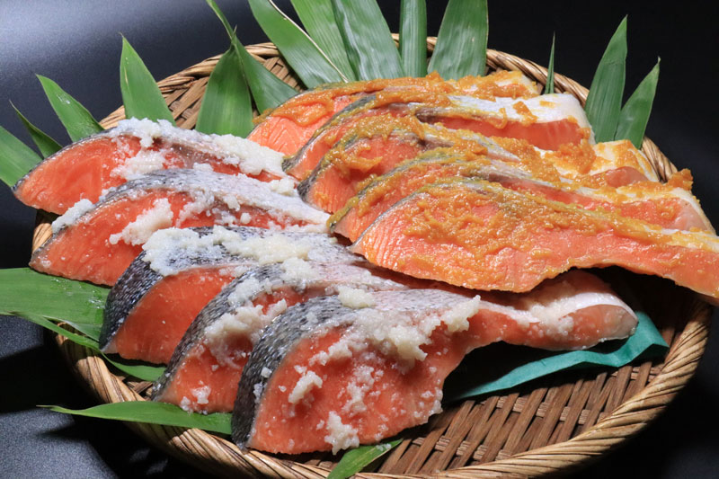 ほどよく脂ののった銀鮭を、当店こだわりの『甘さをおさえた西京味噌』と『素材の旨味を引き出す塩糀』に漬けました。