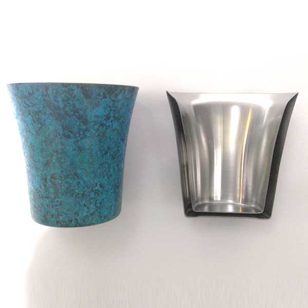 商品表面の着色は元々、銅や真鍮といった素材に対して行われていた技術で、ステンレスに施すには難しいという大きな課題がありました。しかし、様々な試作の数々を重ねた結果、ステンレスの着色を施すという、長年の経験と技術の蓄積がなければ成し得なかった手法に辿り着きました。(実用新案登録済み)