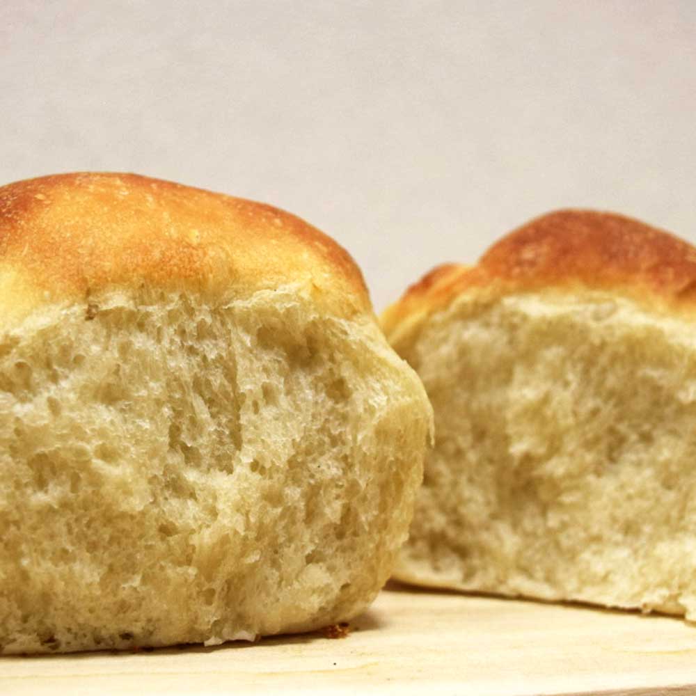 梱包の状態のままレンジで2分半温めて下さい。ふわふわが戻ります。そのあとトースターで温めますと、外カリ中フワになります。塩をひとつまみ入れたオリーブオイルに漬けて食べるのがおススメです!