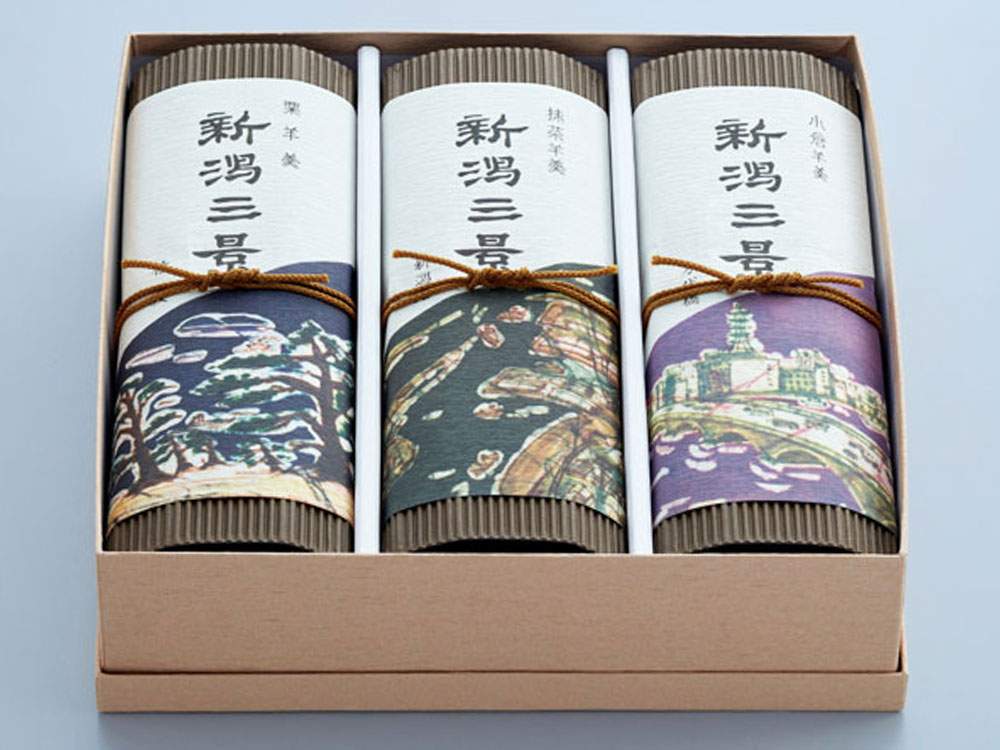 またパッケージに使用している絵は、新潟三景が販売された当時から変わらず使用し続けており、変わらない伝統の味を表現しています。