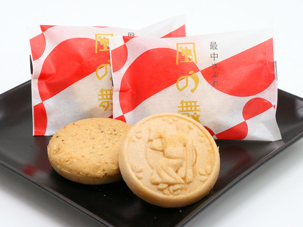 銘菓風の舞さぶれ…ヘーゼルナッツ入りのサブレ生地を最中に詰め焼き上げました。(賞味期限20日間)