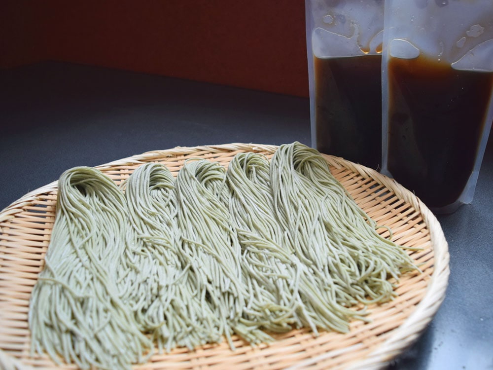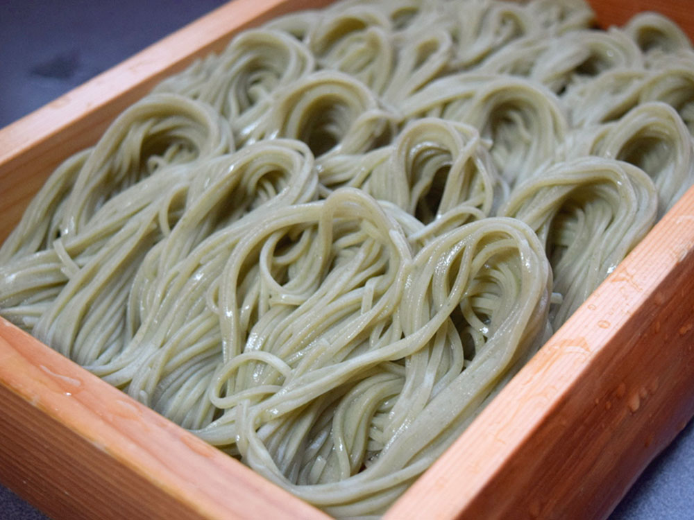へぎそばはつなぎにフノリという海藻を使って打ち上げているので、鮮やかな緑色のつるっとした喉越しが特徴です!