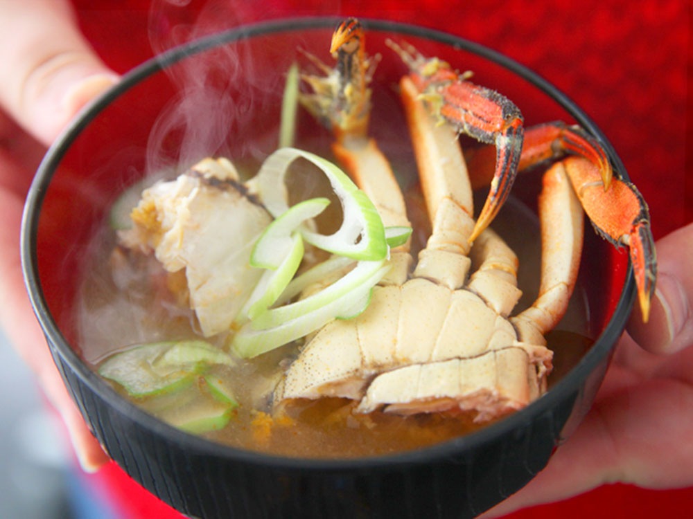 茹で蟹や蒸し蟹、味噌汁に入れて食べるのが一般的です。蒸し蟹にする場合は、甲羅を下にして調理することでカニ味噌が流れ出さず、より美味しくお召し上がりいただけます。