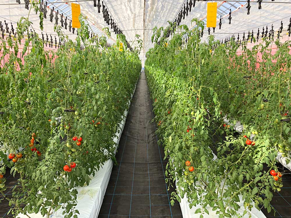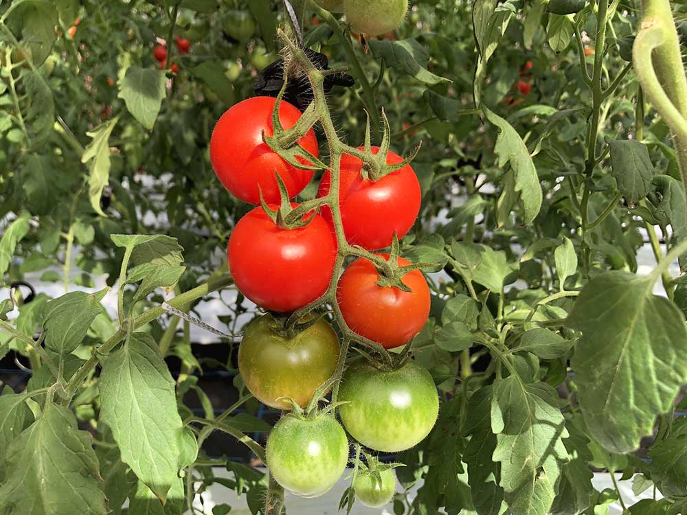 最新の農業技術「アイメック®フィルム」を使ったハウス栽培のほか、ICT技術を用いた栽培管理により、甘くておいしいトマトを生産しています。