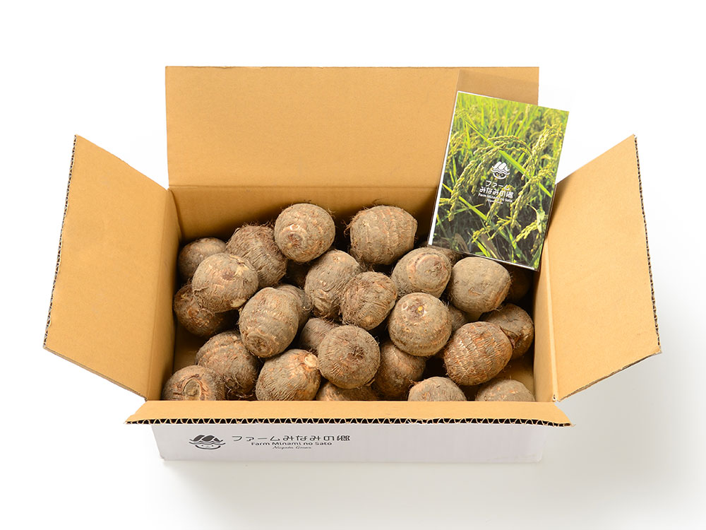 昭和45年頃から本格的な栽培に取り組み、粘り気と旨味が絶品の里芋の栽培に成功しました。日本三大白生地産地である五泉産の絹織物のような美しい里芋をご賞味ください。