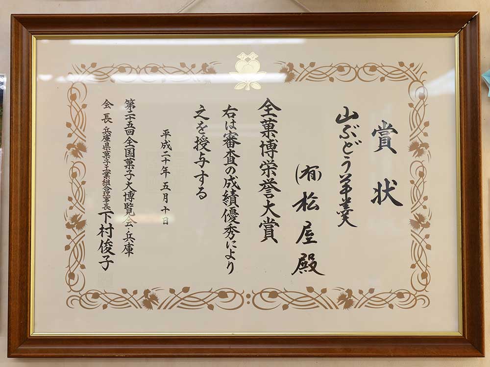 2005年に「新潟県菓子まつり」で最優秀賞、2008年に兵庫県姫路で開催された4年に1度の「全国菓子大博覧会」で全菓博栄誉大賞を受賞するなど、全国に名を轟かせた名品です。
