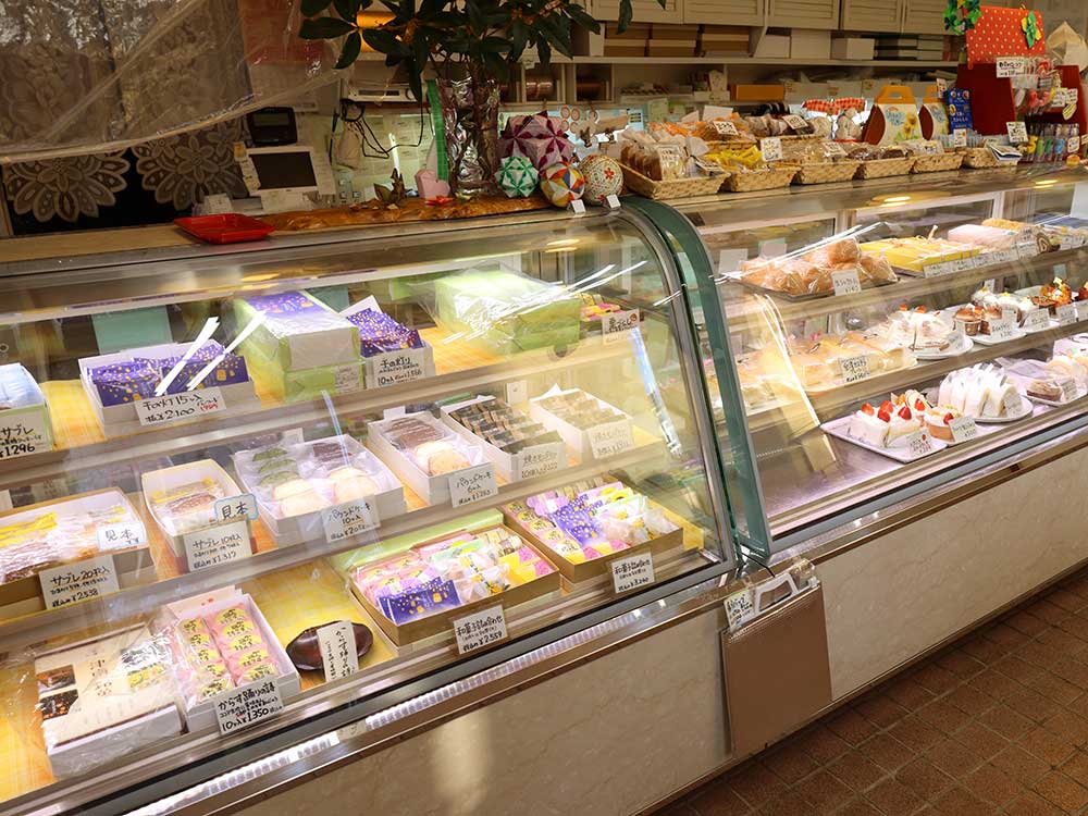 店内はパンやケーキ、和菓子洋菓子など多様な品揃えでお客様をお迎えします。パンは毎日の食事で買い求められるだけでなく、配達を行っての販売サービスも実施しています。