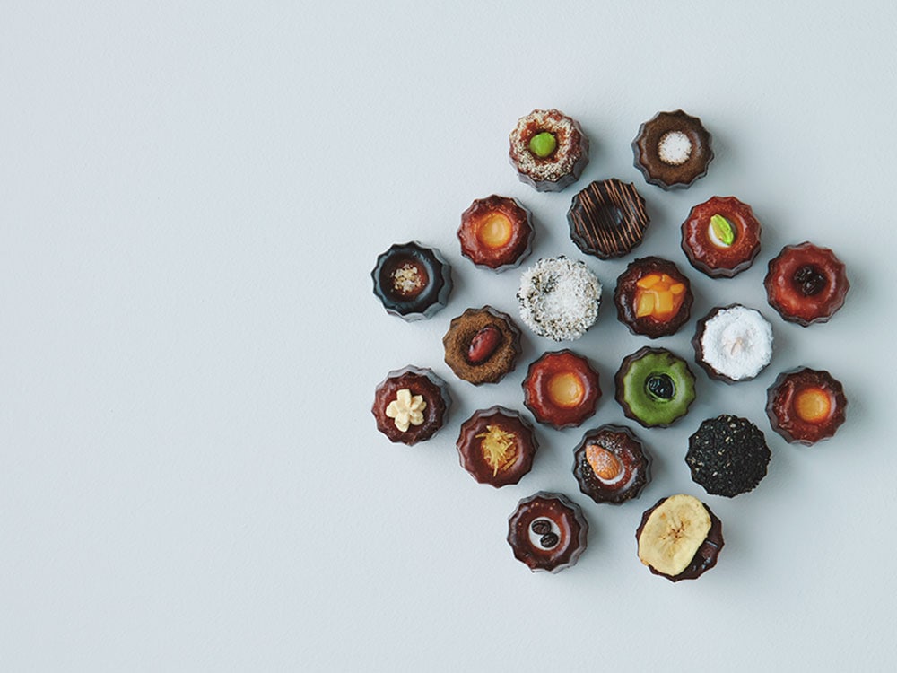 Canele de CHIANTIのカヌレは、全18種もの豊富なフレーバーが自慢。ジュエリーショップ風のおしゃれな店内には、一つ一つ台座に鎮座されたカヌレが並ぶ。芸術品のように展示されたカヌレは、見ているだけでワクワクするような作品たちだ。