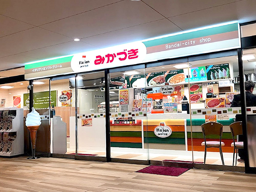 創業は明治42年。この種のお店としては市内では一番古く、芸者さんの出没する場所柄から、半玉さんにはことに人気のお店だったようです。その甘味処の食事メニューとして、昭和35年に考案された「イタリアン」。幸いすぐに人気を得ることができたそうで、その後昭和48年には「イタリアン」を主力商品とする「ファストフードみかづき」の一号店がスタート!それが現在の「みかづき万代店」。