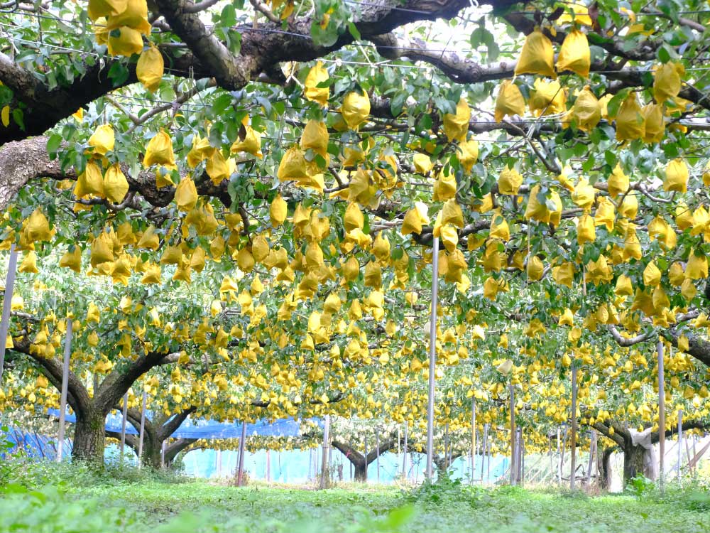 フランス原産のルレクチェは、その品質の高さから世界各国に広まったのですが、栽培の難しさゆえに現在では、新潟県が主な産地として残っているだけで、全世界的にみても非常に希少な西洋なしです。 収穫後に約40日ほど追熟が必要で、当園ではこの期間にモーツァルトのピアノ協奏曲23番・25番を聴かせます。 熟成が滑らかに進むように、と願いを込めて。