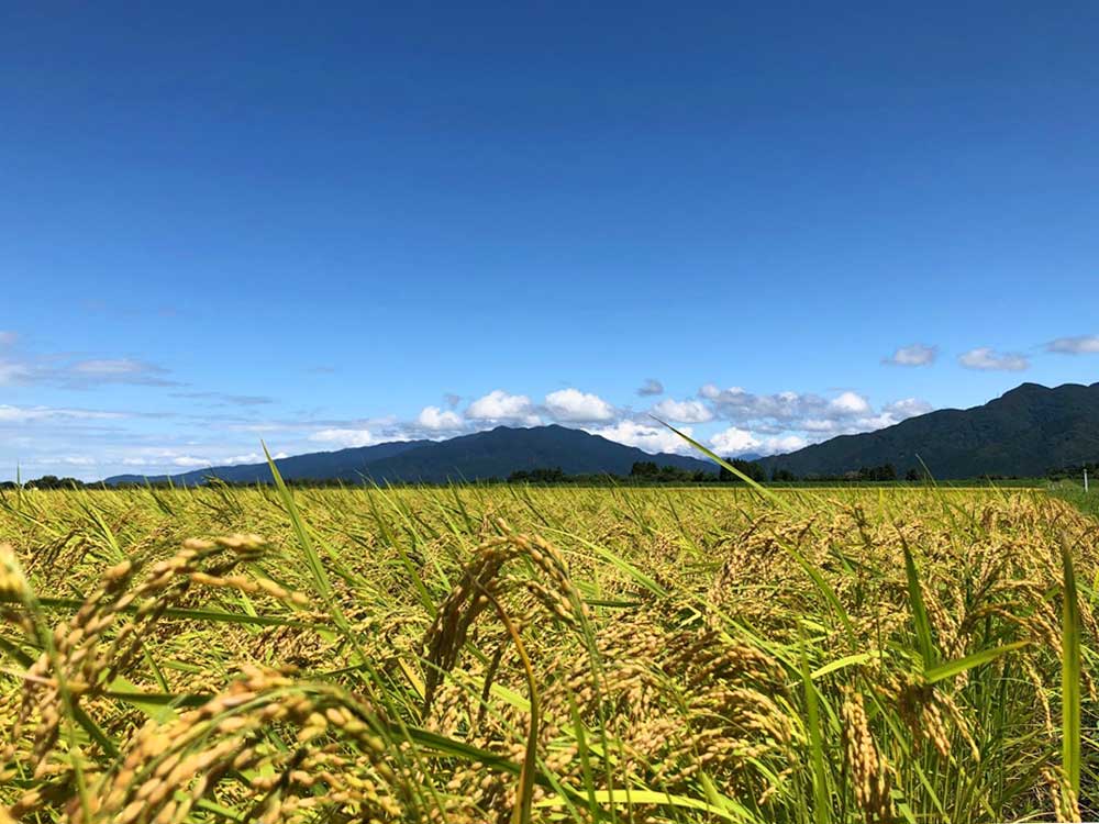 菅名岳、大蔵山、護摩堂山に囲まれた扇状地「五泉」。 豊かな水源に恵まれ、クリアで上質な「阿賀野川の水」を使用して作っているお米です。 昼夜の寒暖の差が大きく、夜間に養分を蓄えることで粘り気が強く、モチモチした食感のコシヒカリに仕上がります。