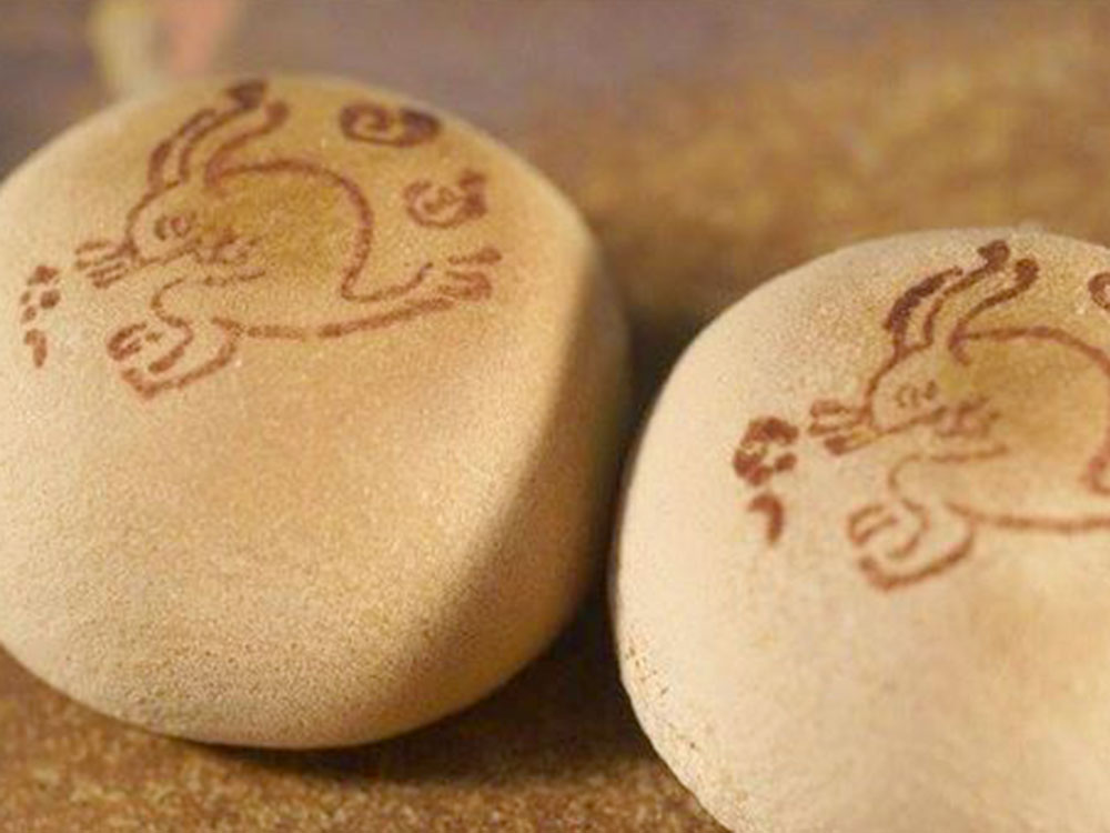 良寛の長歌「月の兎」にあやかって命名したお饅頭。卵をたっぷりと使用した生地に上品なこしあんを包んだ一品です。皮の香ばしさとほろりとした食感のこしあんのバランスがお勧めの一品です。