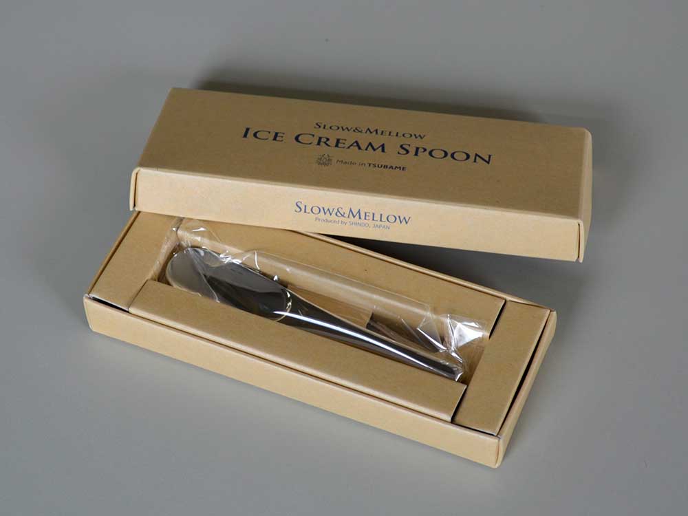 創業当時の「伸銅」に敬意を払い、また現在の主力である「ステンレス線材」に感謝する思いを重ねて「銅の線材を伸ばして」この製品を作りました。握りやすい丸い柄とシンプルな形状はアイスクリームが大好きなあの人への贈り物にぴったりです。