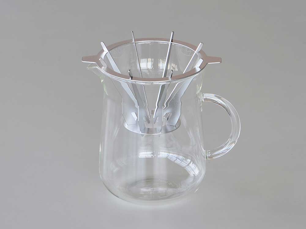 18-8ステンレス製のドリッパーはバートドリッパーと共通です。より気軽に使えるように耐熱ガラス製のカラフェとセットにしました。