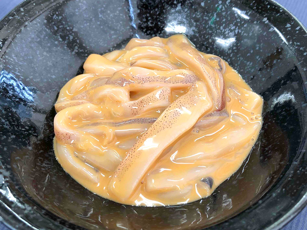日本海で漁獲された新鮮なするめいかの”肝“にこだわり塩辛にしました。 新潟漁協地魚工房ならではのこだわりの逸品です。いか本来の味をお楽しみください。 ※自然解凍後お召し上がりください。