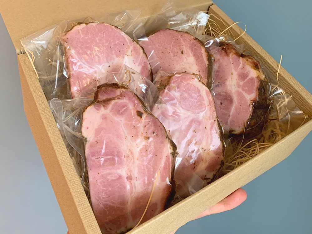 - 新潟県産豚肩ロース肉を特製調味液に約1週間ほど漬け込みしっかり芯まで味をしみこませた逸品