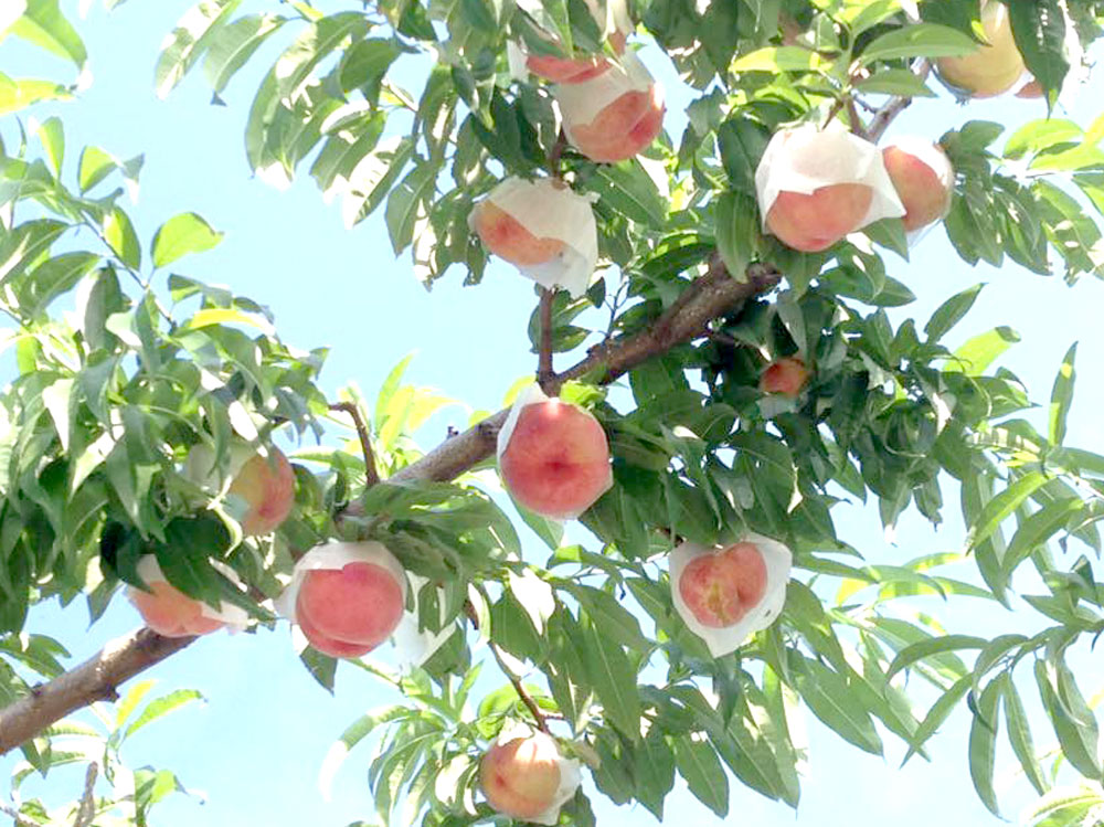 - 農薬散布には佐渡の海洋深層水を一緒に散布し、ミネラル豊富な海洋深層水を葉っぱと桃に補給