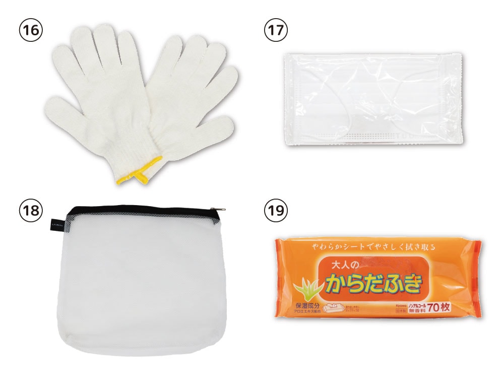 避難生活時の必需品として、またガレキ処理現場やウィルス感染防止にも使えます